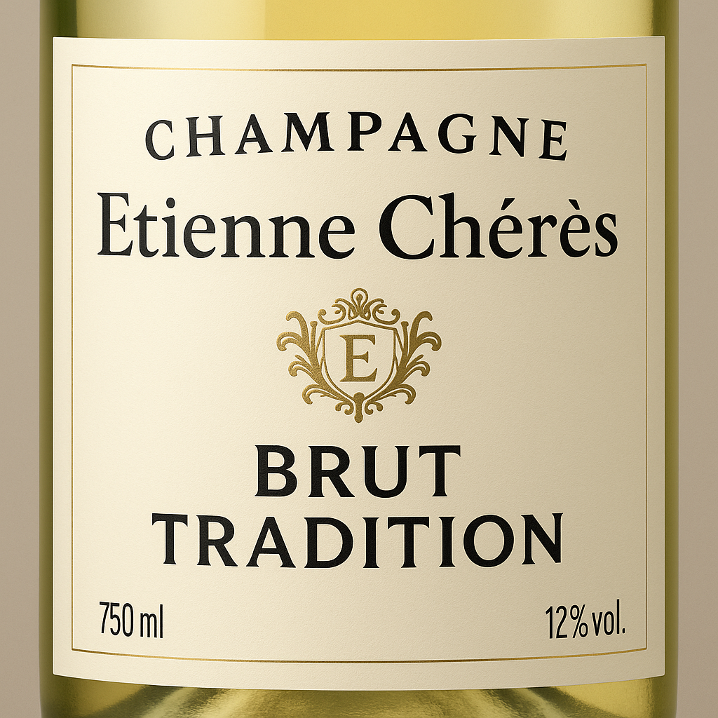 Etienne Chérés Brut Tradition ist ein eleganter, ausgewogener Champagner ohne Jahrgang. Hergestellt aus Chardonnay, Pinot Noir und Meunier, reift er mindestens 15 Monate auf der Hefe. Aromen von grünem Apfel, Zitrus, Brioche und Mandel prägen seinen frischen, cremigen Charakter. Ideal als Aperitif oder zu Fisch, Käse und Geflügel. Serviertemperatur: 8–10 °C.