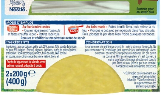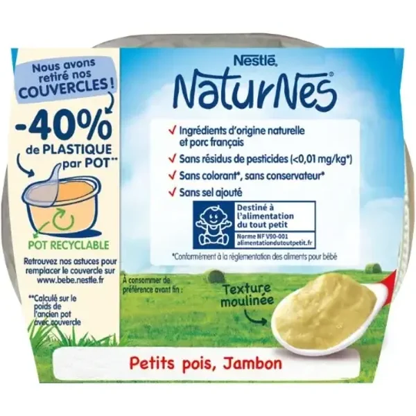 Der Nestlé Babytopf kombiniert feine Erbsen mit mildem Schinken zu einer leckeren, ausgewogenen Mahlzeit für die ersten Beikostmomente.