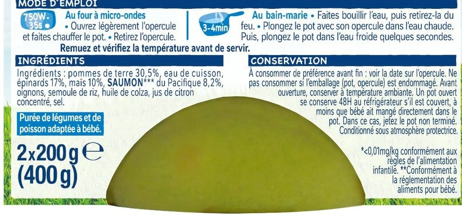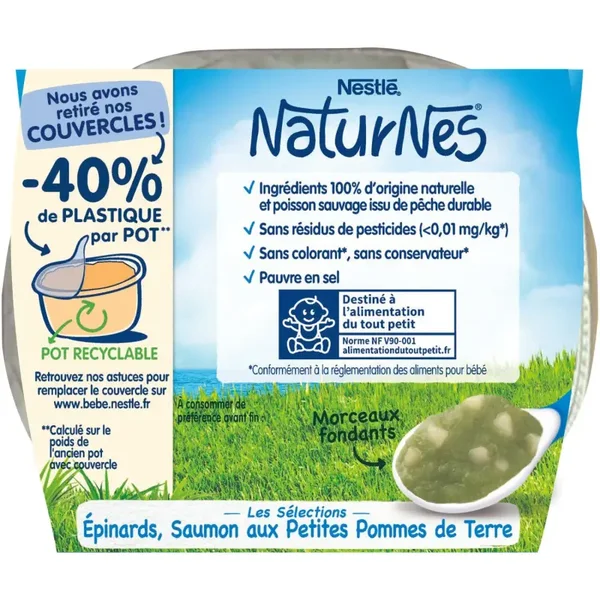 Das NESTLÉ Babygericht Lachsspinat wurde speziell für Babys ab 8 Monaten entwickelt und kombiniert zarten Lachs mit feinem Spinat. Mit hochwertigen, natürlichen Zutaten, ganz ohne künstliche Zusätze, bietet es eine ausgewogene Mahlzeit, die leicht verdaulich und kindgerecht ist. Perfekt für die wachsenden Bedürfnisse von Kleinkindern.