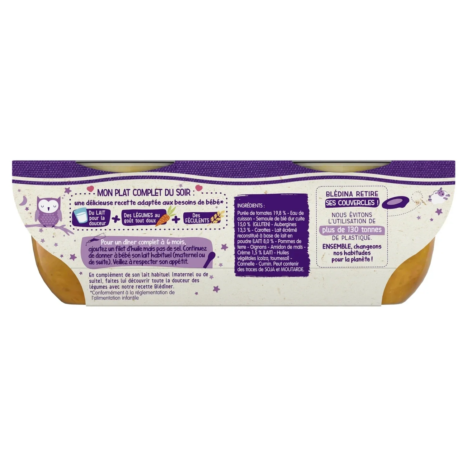 Das BLEDINA Baby-Abendgericht kombiniert den milden Geschmack von Tomaten und Auberginen mit feinem Grieß – ideal für die Abendstunden. Es ist nährstoffreich, leicht verdaulich und enthält keine künstlichen Zusätze. Perfekt abgestimmt auf die Bedürfnisse von Babys ab 6 Monaten, sorgt es für eine ausgewogene und bekömmliche Mahlzeit.