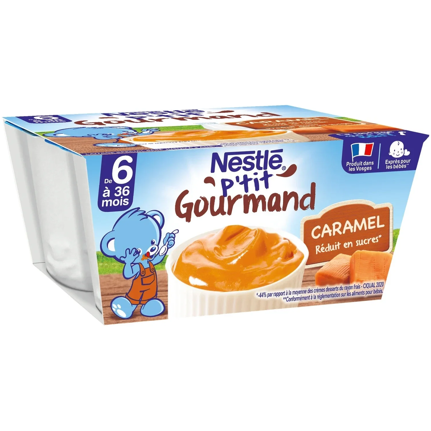 Das NESTLÉ P’tit Gourmand Babydessert vereint cremigen Milchpudding mit feinem Karamellgeschmack – ideal für die ersten süßen Mahlzeiten.