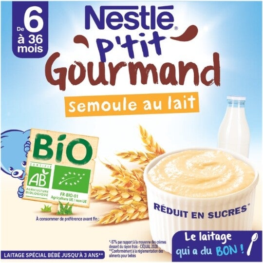 Das Nestlé P’tit Gourmand Milchgrieß-Dessert wurde speziell für Babys ab 6 Monaten entwickelt. Mit seiner fein-cremigen Konsistenz und dem milden Geschmack ist es perfekt für die ersten süßen Mahlzeiten. Es enthält natürliche Zutaten ohne künstliche Zusätze und ist leicht verdaulich – ideal für die gesunde Ernährung deines Babys.