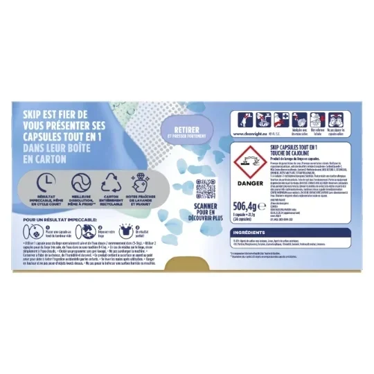 Die Skip All in 1 + Cajoline Kapseln sind ideal für alle Textilien und Temperaturen. Perfekt für den täglichen Gebrauch und für Haushalte, die Wert auf Sauberkeit und Frische legen.