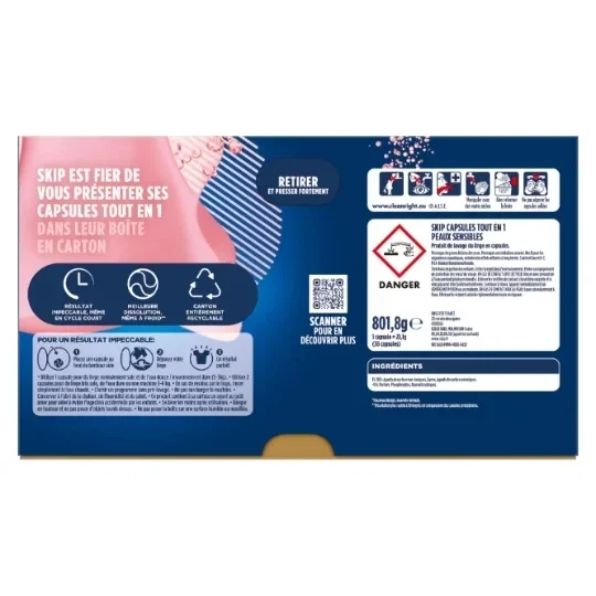Dank der hypoallergenen Formel sind die SKIP Sensitive Skin 3in1 Waschkapseln dermatologisch getestet und frei von Farbstoffen, um das Risiko von Hautirritationen zu minimieren. Ideal für die tägliche Wäsche von empfindlicher Haut, inklusive Babykleidung.