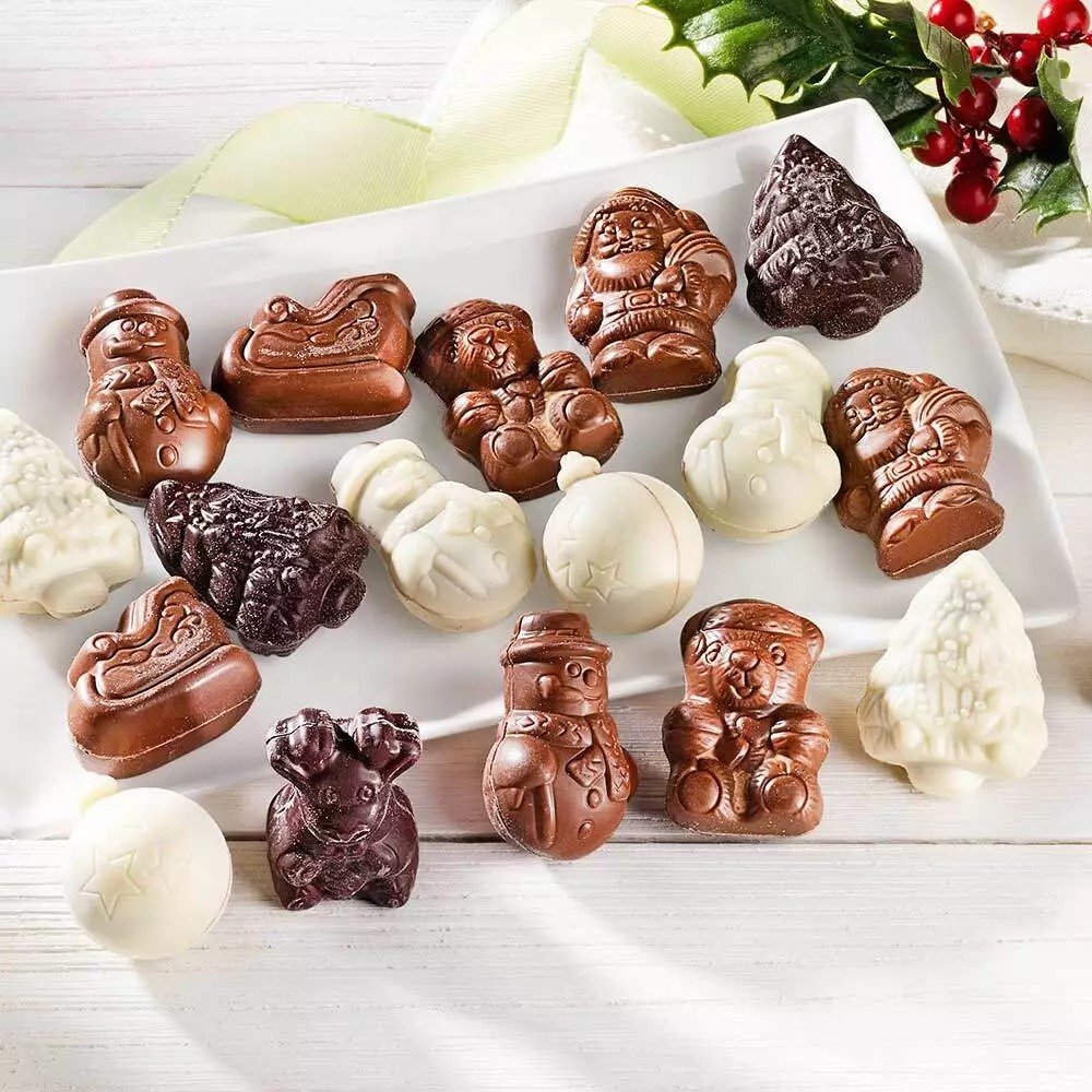 Inhalt: Verschiedene Weihnachtsmotive aus zarter Milchschokolade und feinstem Nougat.