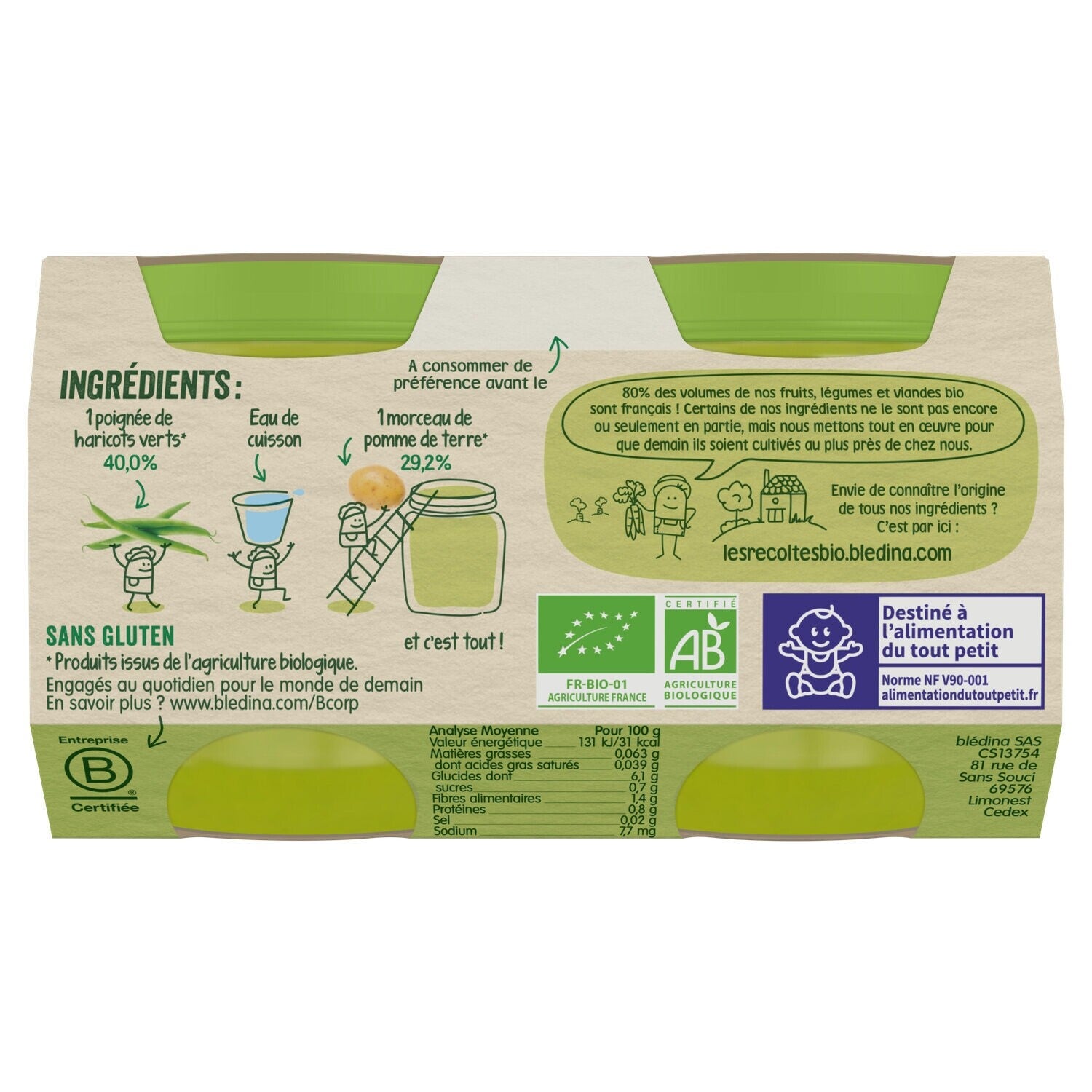 Blédina Les Récoltes Bio Babybrei Grüne Bohnen & Kartoffeln 2 x 130 g (3 x St)