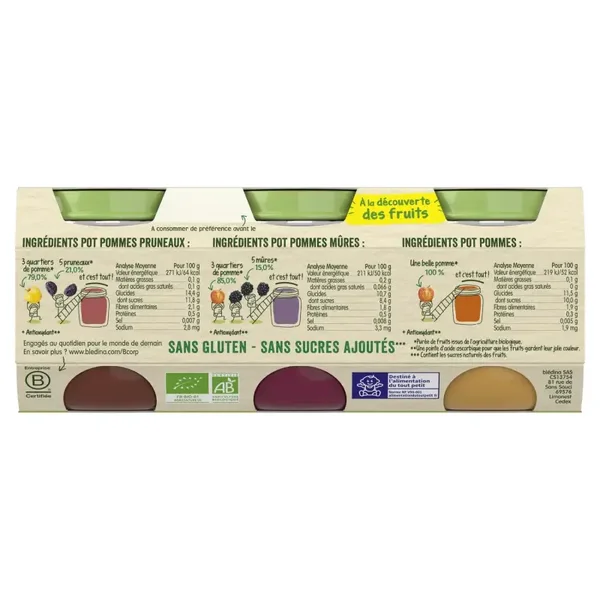 Blédina Les Récoltes Bio Babybrei Apfel & Pflaume (6 x Stück)