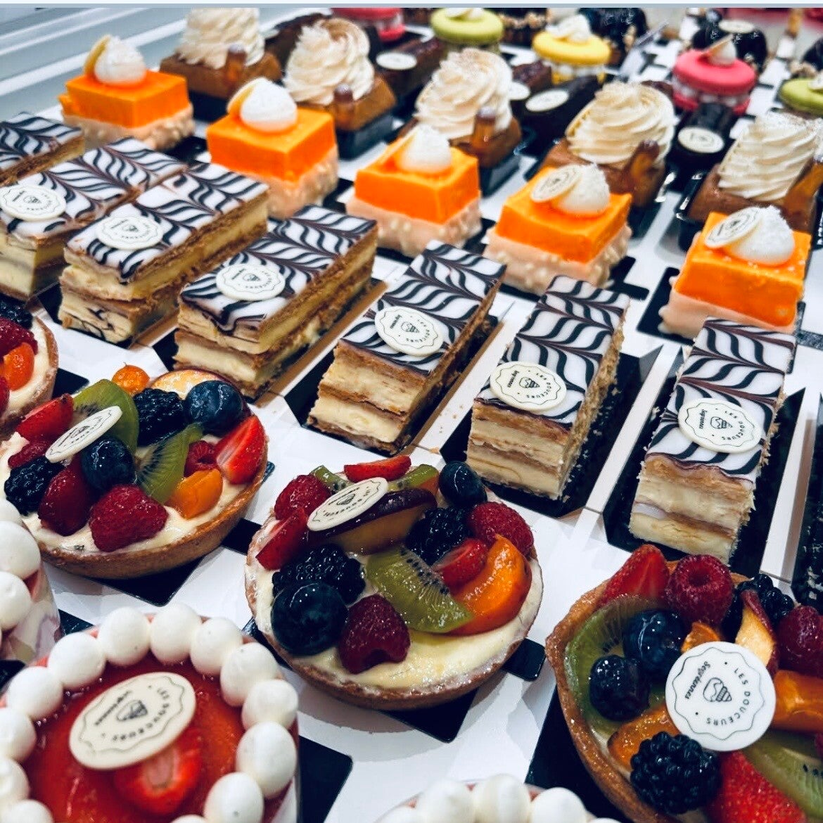 Fein geschichtetes Mille-Feuille aus knusprigem, karamellisiertem Blätterteig, gefüllt mit zarter Vanille- oder Pistaziencreme. Veredelt mit frischen Beeren oder feinem Zuckerguss – cremig, knusprig und elegant.