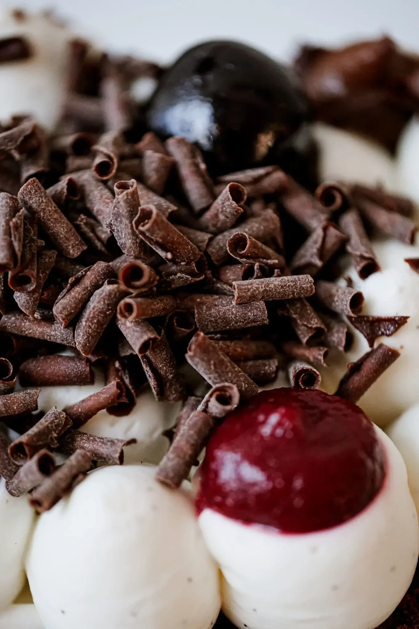 Ein Meisterwerk aus zartem Schokoladenbiskuit, fruchtiger Kirschfüllung, feinster Sahne und edlen Schokospänen.