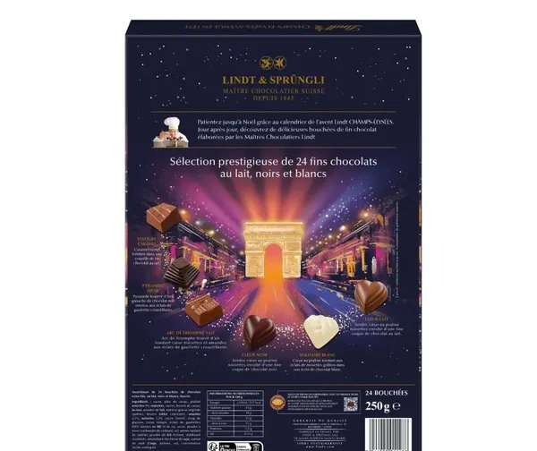 Erlebe den Advent mit einem Hauch von Luxus! Der Lindt Adventskalender für Erwachsene (250 g) bietet Tag für Tag ein köstliches Geschmackserlebnis aus feinster Milchschokolade, intensiver Zartbitterschokolade und cremiger weißer Schokolade.
