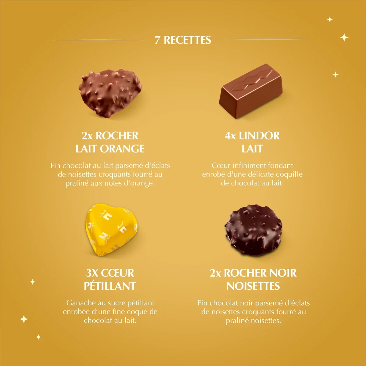 Genießen Sie den festlichen Luxus der LINDT Champs-Élysées Édition Or: 181 g feinste Pralinen aus Milch-, Zartbitter- und Weißschokolade, liebevoll gefüllt und edel verpackt in Gold. Perfekt als Geschenk oder für genussvolle Feiertage.